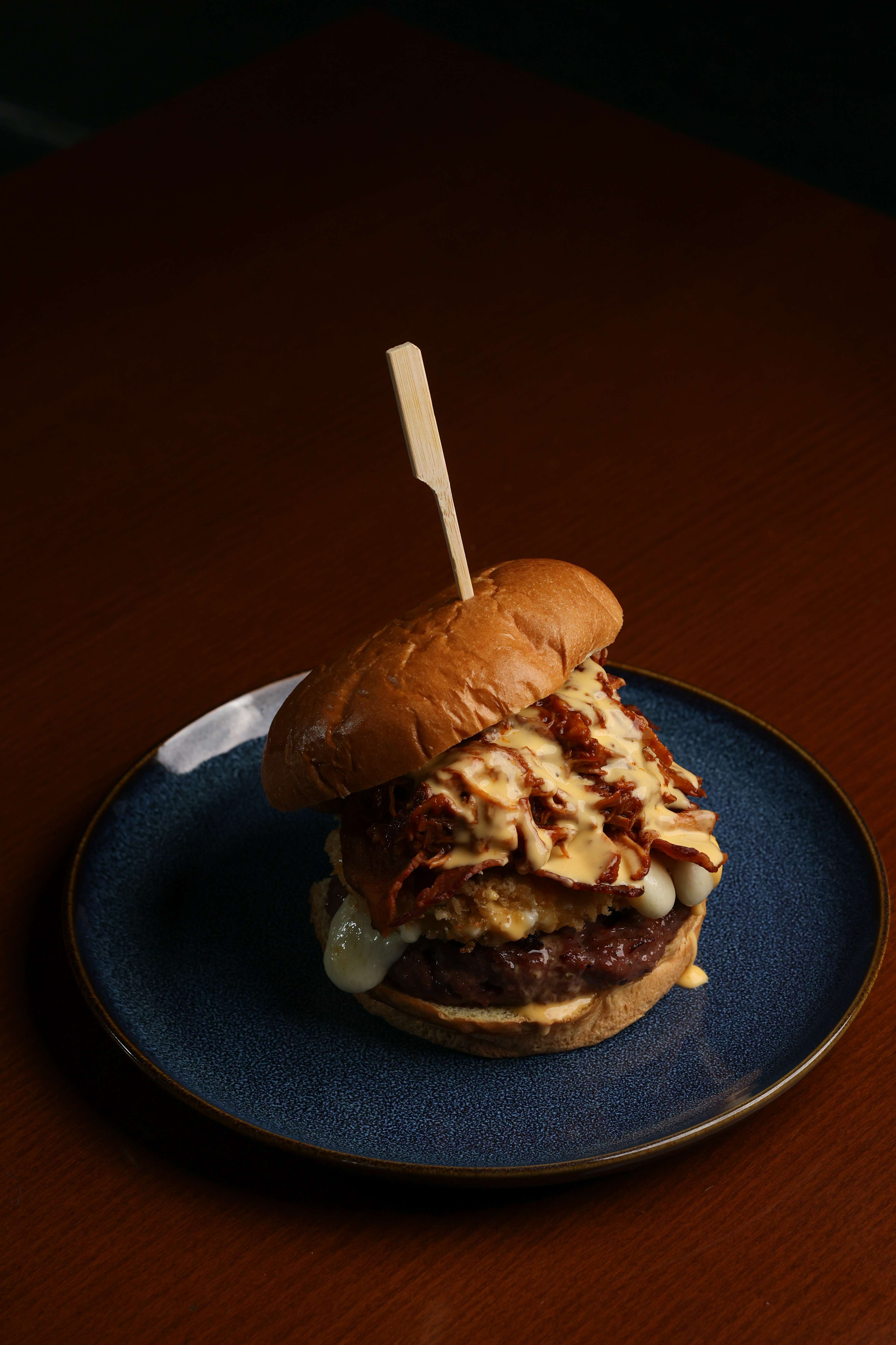 Hamburger di scottona, pulled home made, provola panata e fritta, salsa cheddar e bacon.